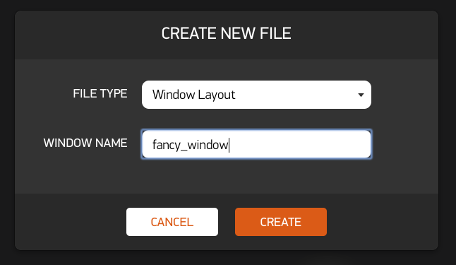 To create your first window, click "Add New" next to "Source Files", select "Window Layout", and name your new window: